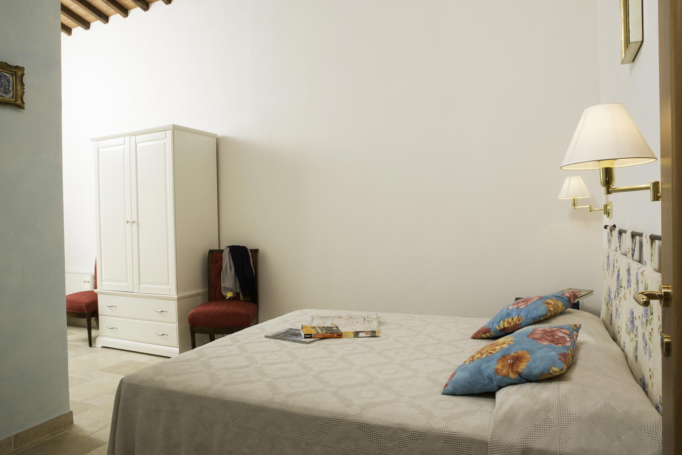Vi sono due appartamenti con due camere matrimoniali ed in ognuno dei due è possibile aggiungere massimo un lettino per un bambino (4-11 anni). Azzurro è persino dotato di un tipico caminetto toscano per trascorrere romantiche serate in casa, e di un condizionatore per quelle giornate particolarmente calde d'estate, oltre che di una lavastoviglie per pulire e riassettare la cucina con estrema facilità dopo aver preparato deliziose ricette tradizionali locali. Giallo, con un letto matrimoniale e due lettini singoli, è dotato anch'esso di caminetto; all'esterno vi troverai un gazebo privato ed un giardino.