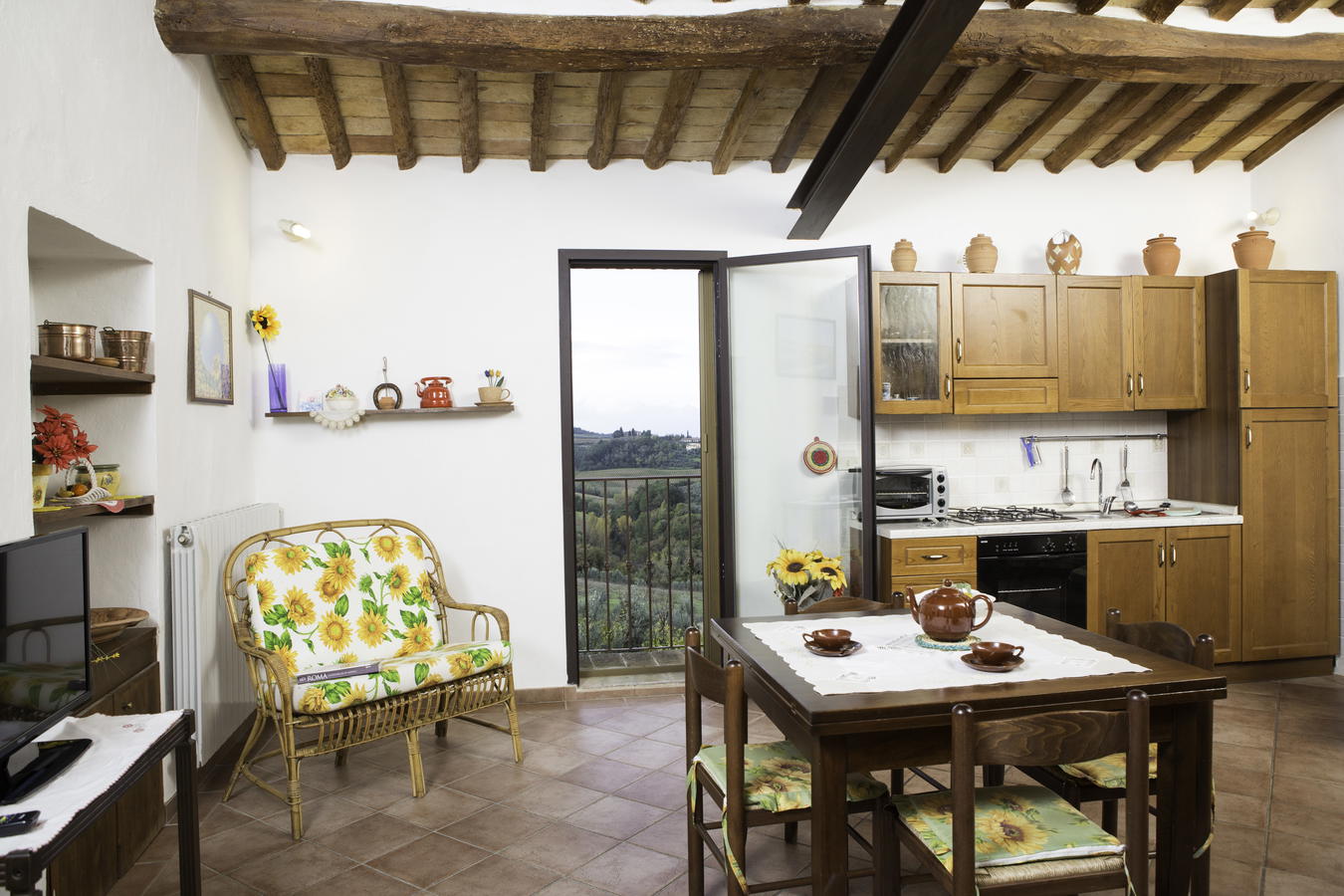 Agriturismo Casa dei Girasoli è sinonimo di un soggiorno caratterizzato da panorami e vedute magnifiche, sia sulla città di San Gimignano, che sul tipico paesaggio rurale toscano, dominato da verdi colline ricoperte di girasoli, vigneti ed oliveti. Dal tuo spazioso e luminoso appartamento potrai respirare la fresca brezza di campagna e l'atmosfera che circonda questo luogo ameno e paradisiaco.