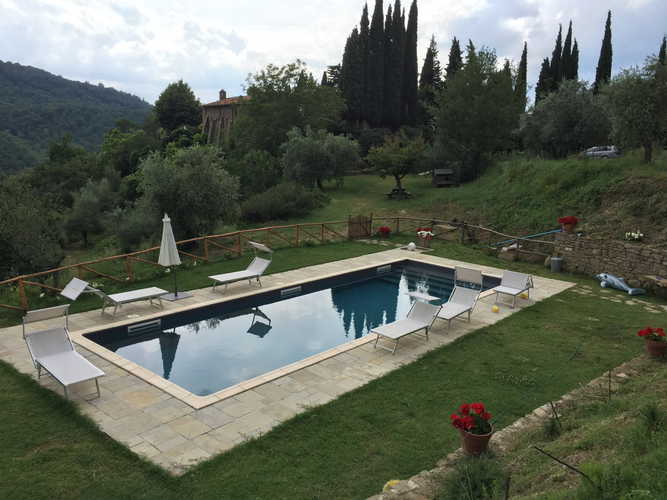 L'appartamento Il Convento, uno dei più vecchi dell'antico complesso, vanta soffitti molto alti ed archi in pietra che mettono in risalto lo stile tradizionale toscano, un giardino privato con piante di rosmarino e lavanda, vicino a cui si trovano dei suggestivi cipressi. Quest'appartamento è perfetto per una famiglia composta da 2 adulti e 2 bambini, anche se può esser facilmente organizzato per 4 adulti.
