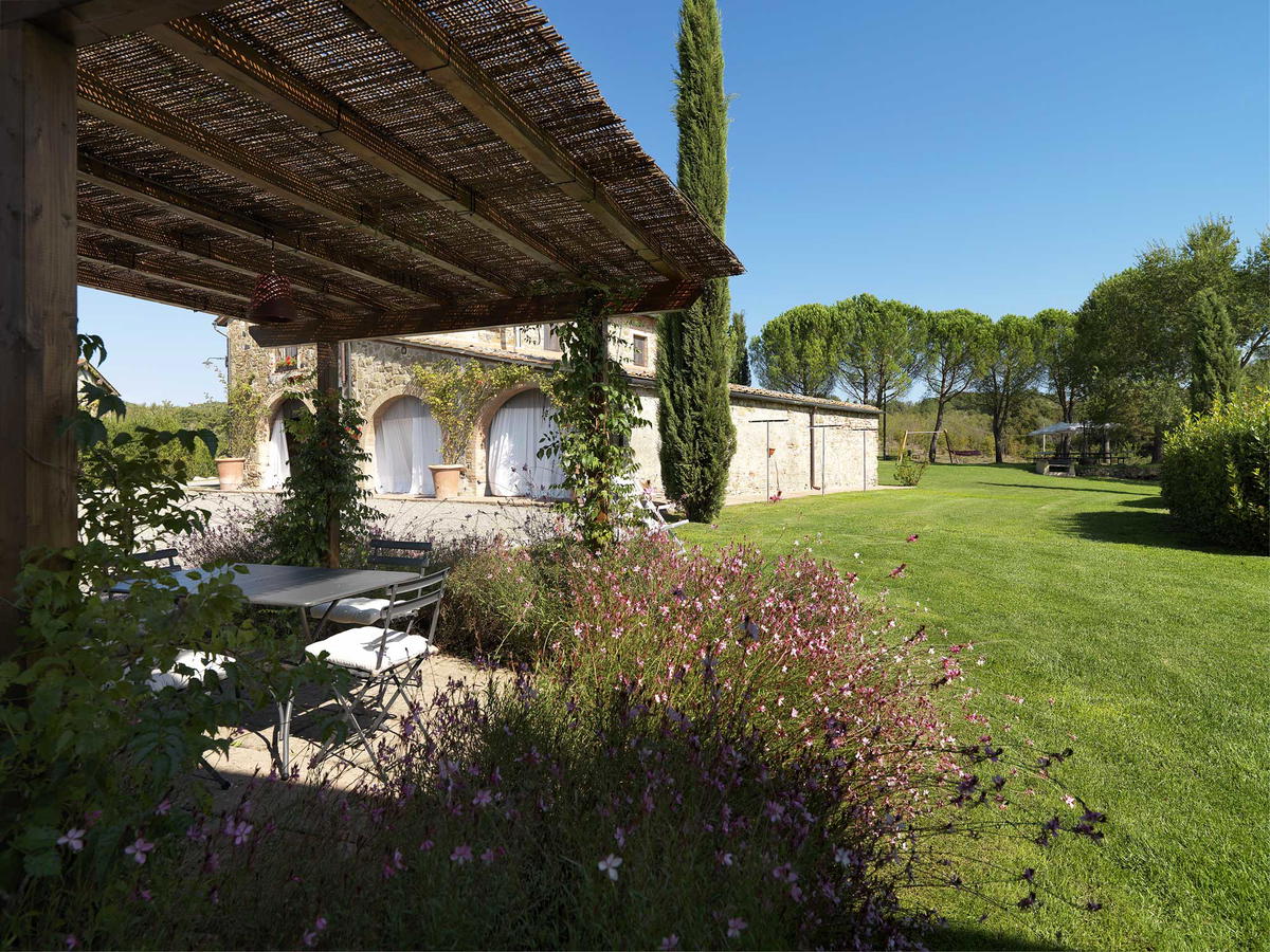 Gli agriturismo, in tradizionale stile rustico toscano, vantano numerosi comfort moderni ed un arredo contemporaneo che mette in evidenza le camere luminose e spaziose. I 7 appartamenti variano da un'ampiezza di 50 a 135 metri quadrati, con un arredo semplice ma al tempo stesso molto elegante: i colori, la biancheria ed i particolari del mobilio mettono in risalto l'architettura originale con archi in mattoni, pareti in pietra e caminetti.