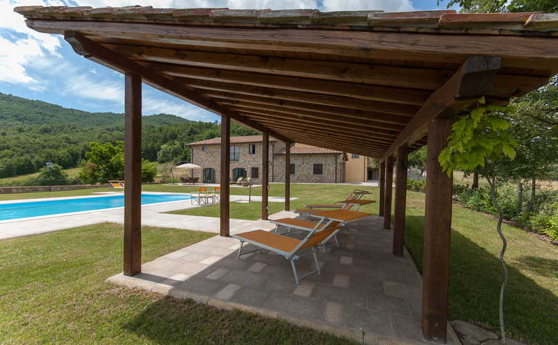La piscina privata riscaldata, che è condivisa solo dalle due ville, offre ampio spazio per prendere il sole della Toscana e immergersi nella tranquilla atmosfera di campagna.