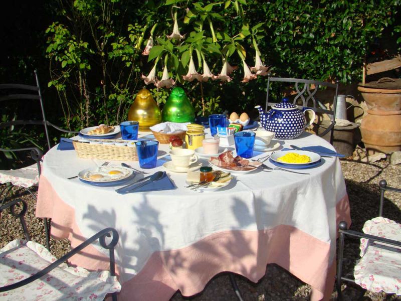 La colazione è una festa di marmellate fatte in casa, formaggi locali, piatti freschi preparati da Frances con frittelle o toast alla francese, servito con una ricetta speciale di sciroppo di limoni - coltivati nel giardino. Tempo permettendo, la prima colazione viene servita in giardino e l'aroma delle delizie appena sfornata si mescola con il leggero profumo dei fiori appena sbocciati, dal glicine alle rose. Nei giorni più freddi i tavoli sono sistemati nella limonaia, dove l'ambiente accogliente è perfetto per una chiacchierata amichevole con i vostri compagni di viaggio, e dove se si è fortunati, potrete facilmente dimenticare il cielo coperto o una temperatura troppo bassa con un assaggio dell'olio extravergine d'oliva biologico prodotto dal b&b.