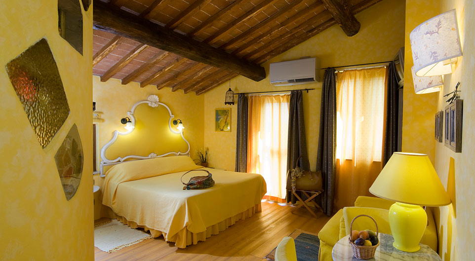 Il Relais è composto da 5 camere matrimoniali, ognuna diversa dall'altra e caratterizzata da un tema particolare, messo ulteriormente in evidenza da una meravigliosa combinazione di colori. Ogni camera è dotata di aria condizionata autonoma, accesso ad internet, TV a schermo piatto e vista sul panorama che circonda la residenza. Vi è la Camera Bianca, denominata anche Camera degli Sposi, con una piccola area esterna ed una veduta mozzafiato sul profilo di Siena, la Camera Gialla, con tre finestre che si affacciano sulla campagna circostante ed un bagno ultramoderno e raffinato; vi è la Minisuite Marocchina, con i tipici colori che ricordano suggestive atmosfere d'Africa. Ogni camera è arredata con oggetti e mobilio di alta qualità e design, alcuni dei quali appartenenti alla famiglia, altri firmati dai più famosi brand d'arredo.