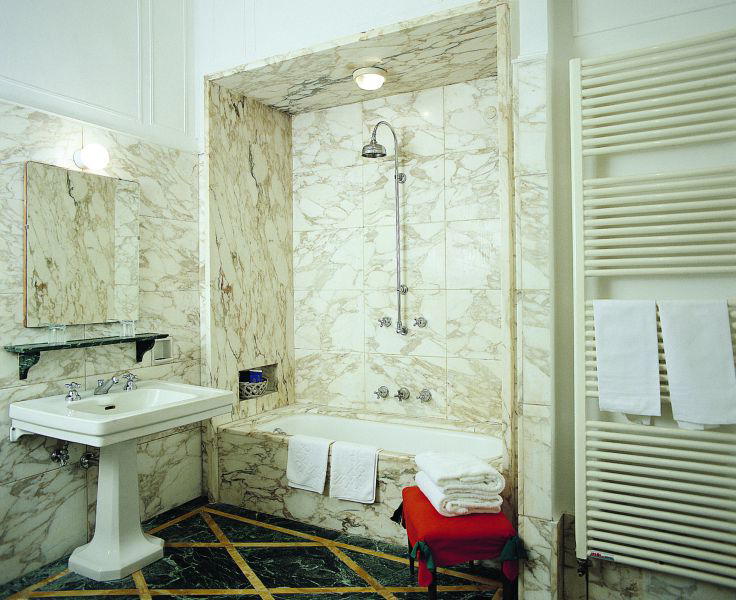 L' atmosfera ottocentesca rivive ancora oggi attraverso gli eccezionali arredi d' epoca, i tessuti, gli affreschi originali e gli eleganti marmi che arricchiscono tutti gli ambienti dell' albergo, gestito con passione e professionalità dalla famiglia di proprietari e dall' ottimo staff.