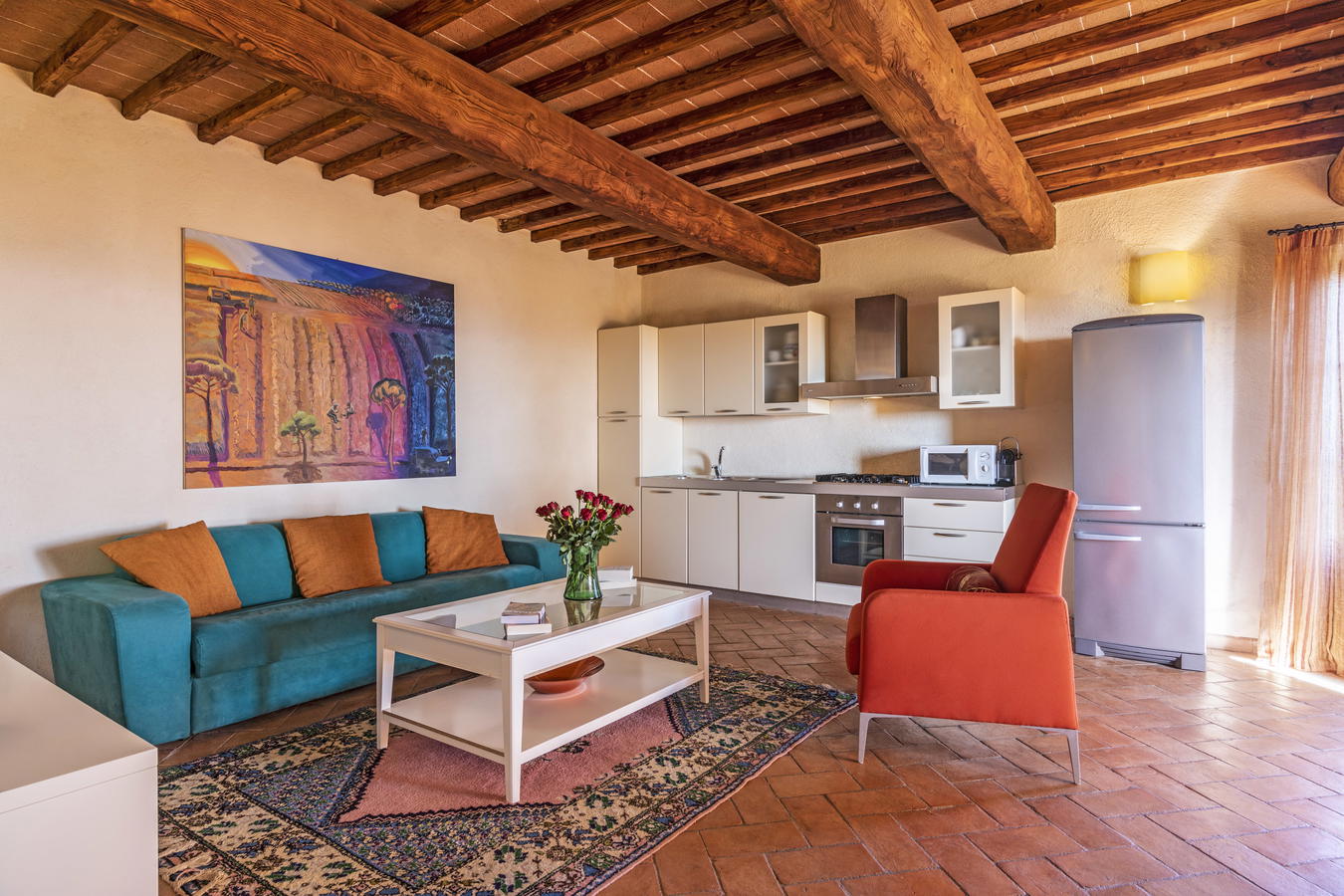 L' agriturismo offre 7 appartamenti indipendenti costruiti con materiali tipici toscani, pavimenti e soffitti in cotto, quest'ultimi ornati con caratteristici travicelli in legno. Gli alloggi sono stati arredati in stile moderno e dotati di ogni comfort e servizio.