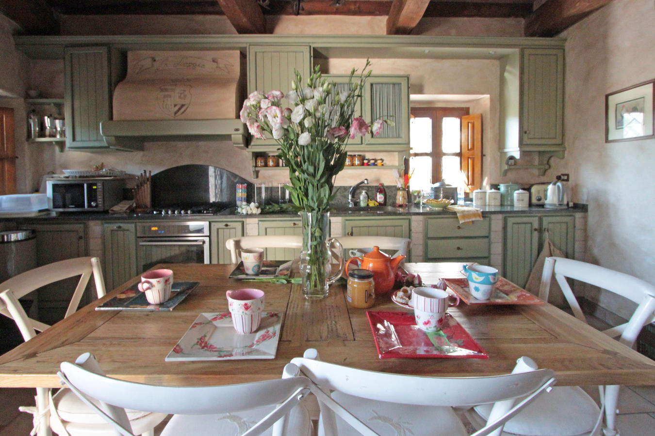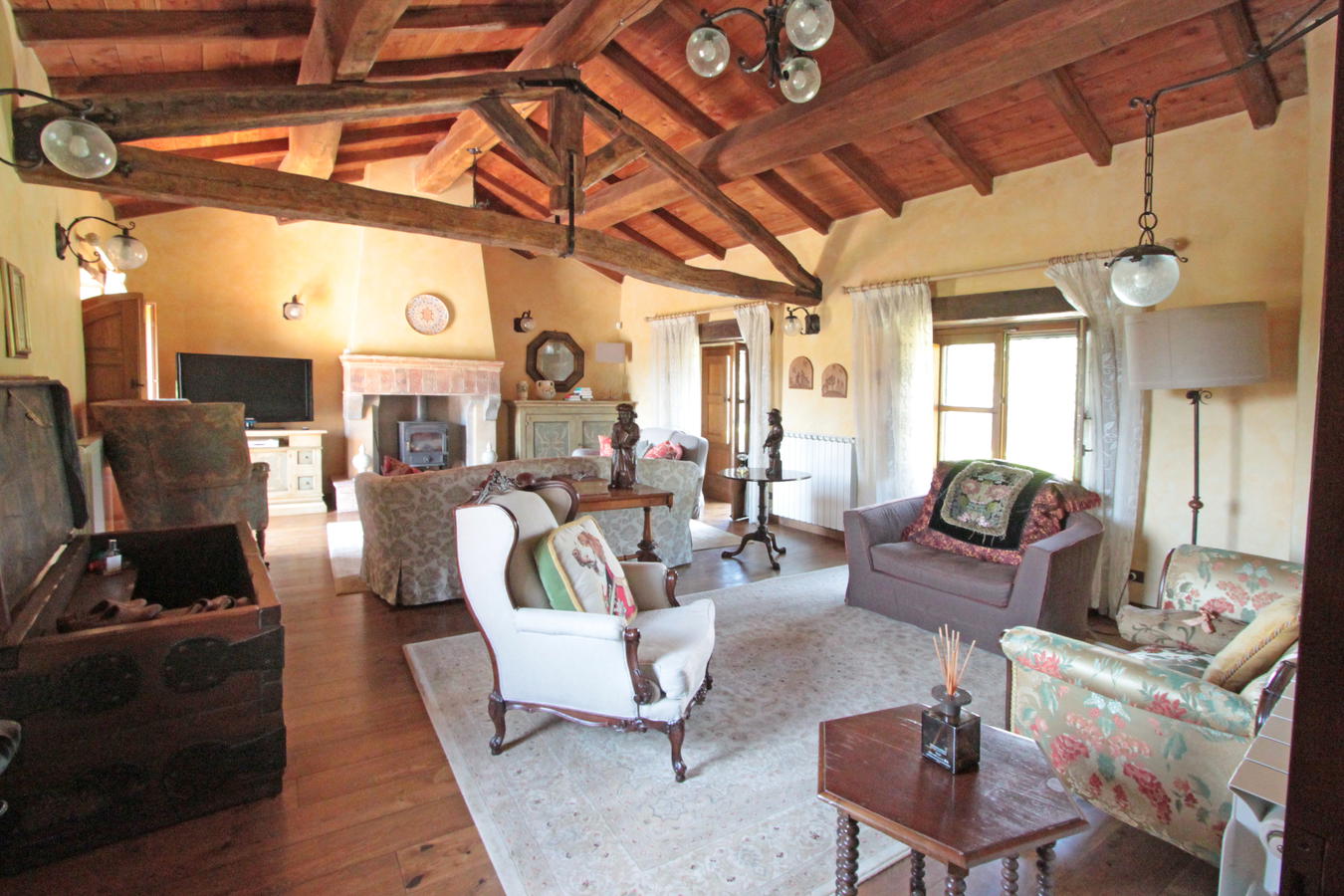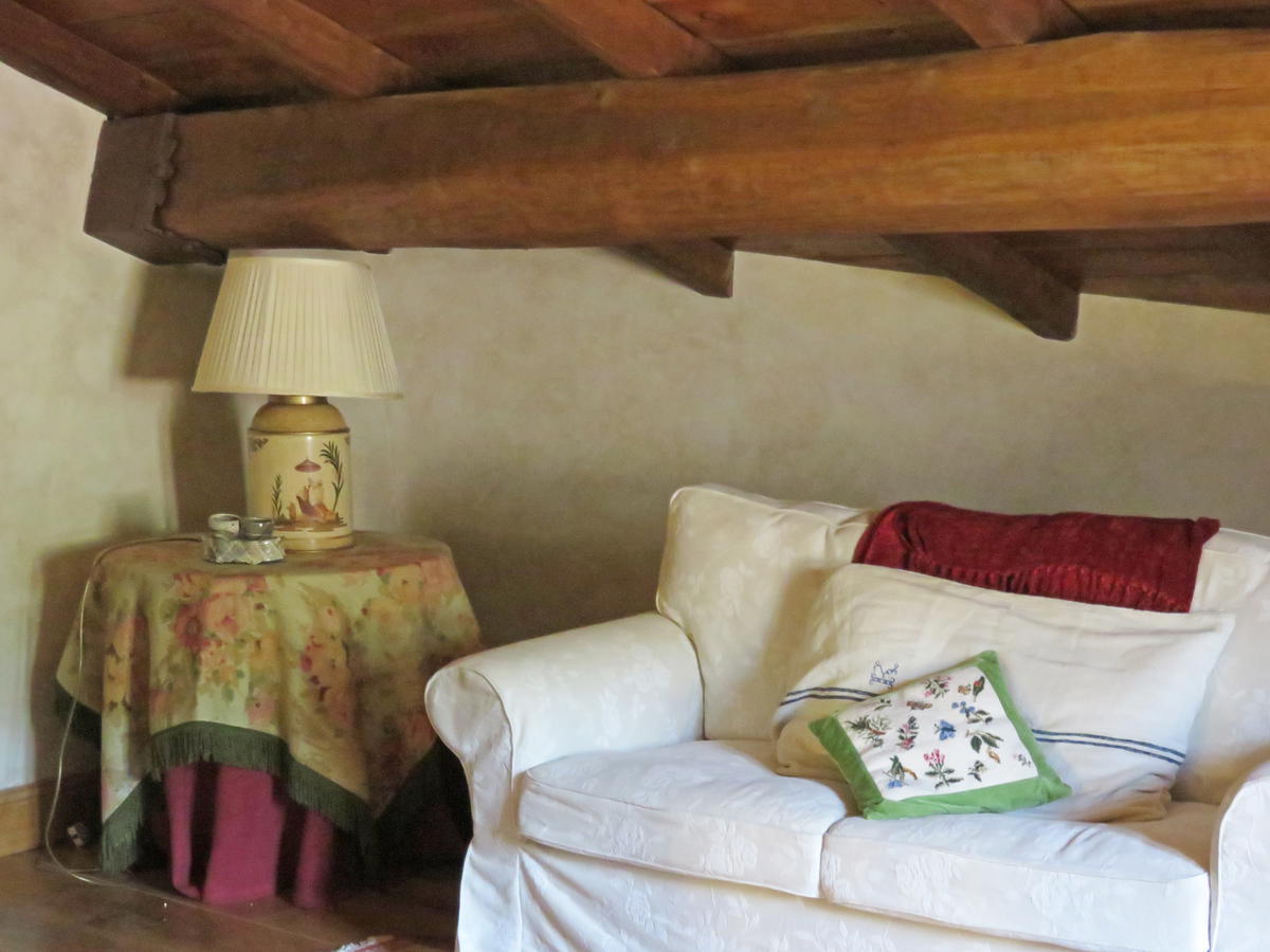 Al primo piano, si trova la quarta camera, anch'essa con due lettini singoli; l'ampio soggiorno con il caminetto è arredato con molto stile, con soffici poltrone, divani e dettagli creativi che mettono in risalto l'architettura tipica toscana. Questa stanza è dotata di un grazioso terrazzo, da dove potrai ammirare le meraviglie del panorama circostante, fatto di sinuose colline, fiori e piante colorate e della fresca brezza della Lunigiana. La cucina in stile country della villa è dotata di tutto il necessario per preparare deliziosi piatti della tradizione locale e si affaccia su un bellissimo loggiato che guarda il cortile; la sala da pranzo è caratterizzata da un ampio soffitto con i travi a vista ed una scalinata a vista che conduce all'ultimo piano, dove si trovano uno studio e la quinta camera.