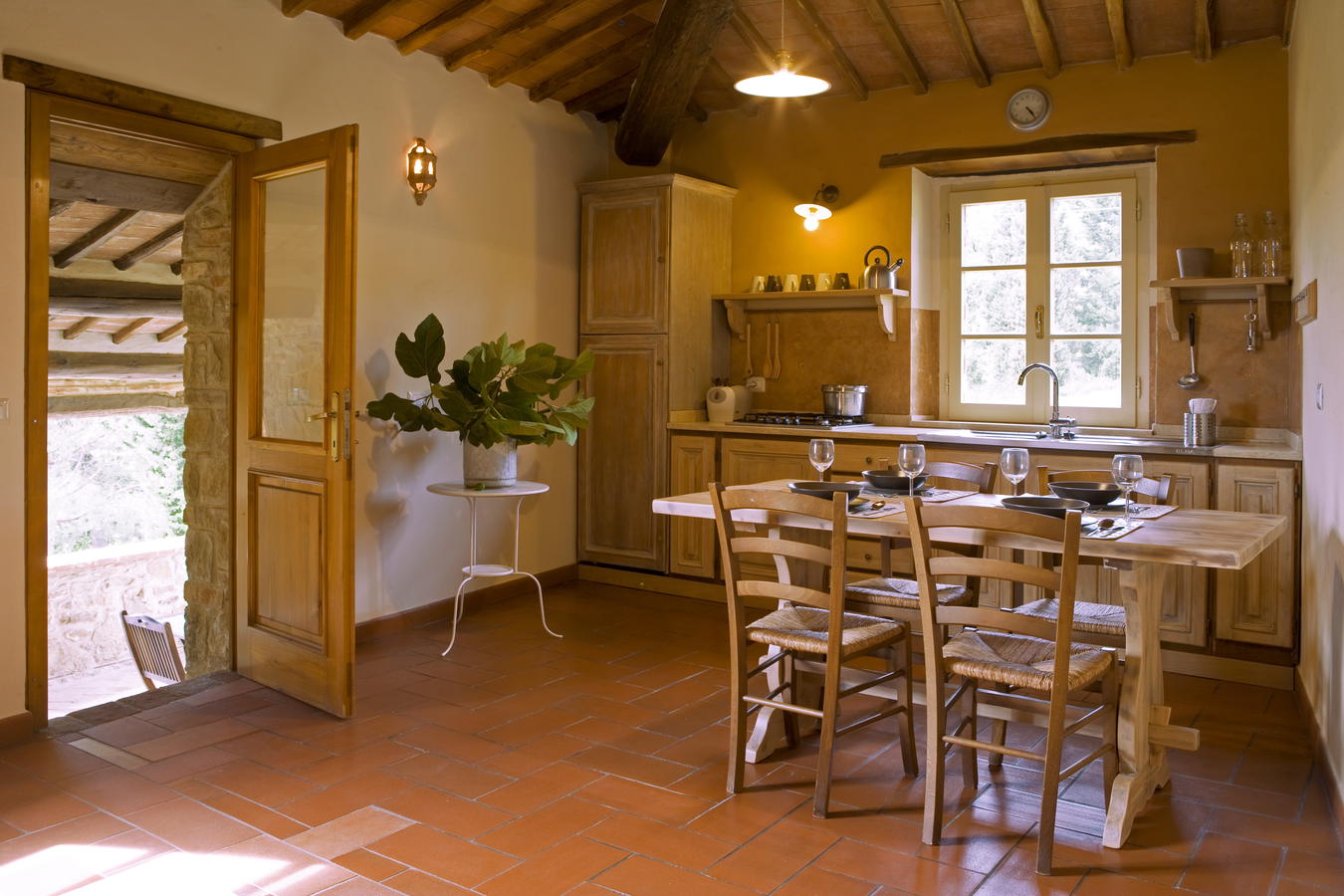 Ogni appartamento è composto da una cucina in tradizionale stile toscano con abbastanza spazio per mangiarvi, accessori moderni, tutto il necessario per preparare da golosi pranzetti ed un sacco di luce naturale; un'area esterna privata, dove poter pranzare o cenare all'aperto, godendo della fresca brezza che caratterizza quest'area. Ogni appartamento è dotato di due camere da letto, una matrimoniale ed una con lettini singoli, mentre i bagni, tutti con doccia, sono caratterizzati da un design graziosamente contemporaneo. Due degli appartamenti sono situati al piano terra, con accesso diretto ai rispettivi giardini, e gli altri due al piano primo, dalle cui terrazze si scorgono - tra gli archi in mattoni - vedute fantastiche sul paesaggio.