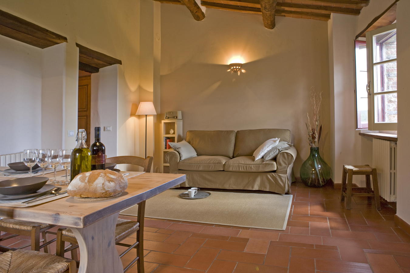 L'arredo degli appartamenti ricorda i colori che si trovano in natura, soprattutto nel paesaggio toscano, dai toni neutri ed accenti più vivi, che mettono in risalto la ristrutturazione dell'agriturismo, realizzata con cura ed attenzione a preservarne gli aspetti originali ed a porre in evidenza le caratteristiche tipiche dell'architettura rurale locale, come le massicce travi a vista ed i pavimenti in terracotta. Wifi ed accesso al giardino ed alla piscina dalle vedute panoramiche.