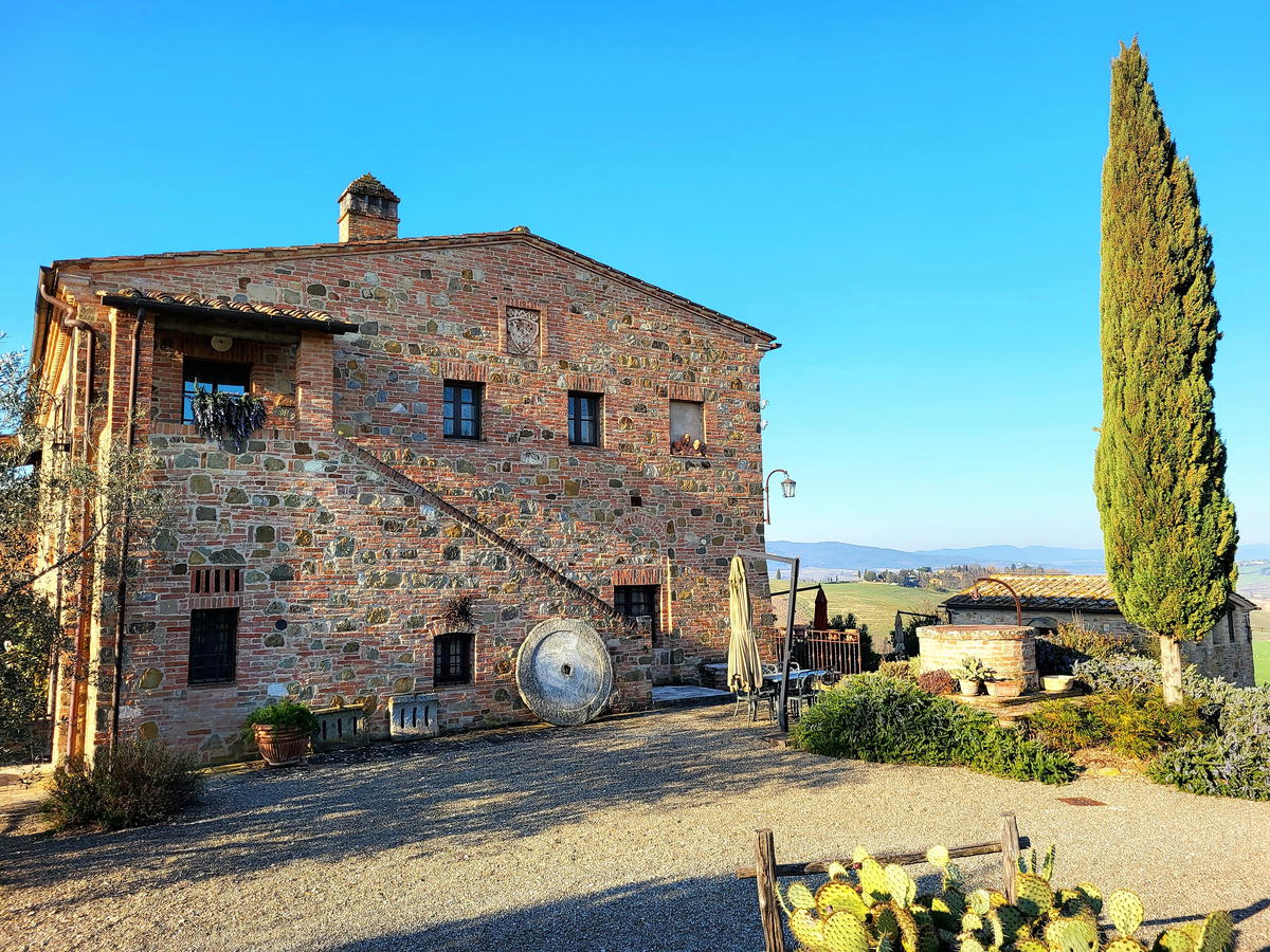 Podere Cunina è un bel casale situato a Buonconvento, nelle Crete Senesi, una zona dai paesaggi davvero suggestivi e affascinanti tra Siena e la Valdorcia.