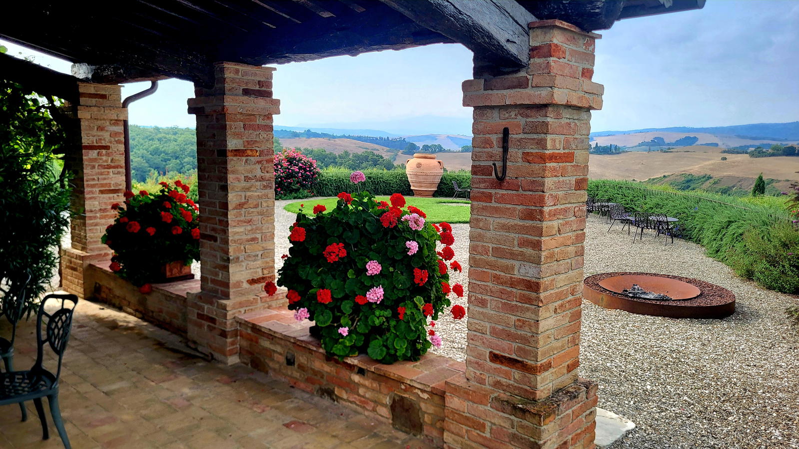 Gli appartamenti hanno tutti un'area esterna fornita di sedie e tavolo, dove gli ospiti possono anche solo sedersi per ammirare il paesaggio ed il panorama circostante: Montalcino, il Monte Amiata, le caratteristiche Crete Senesi e la Val d'Orcia.