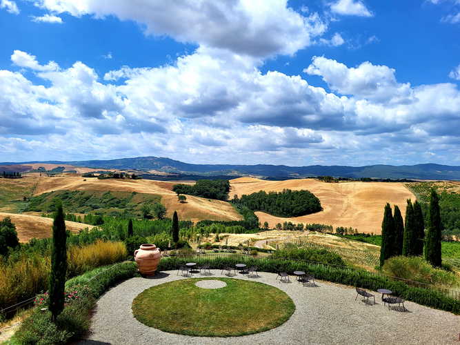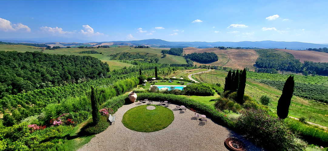 Godrete di un incredibile panorama a 360° con vista su Montalcino, Siena e la Val d’Orcia, nel centro della Toscana